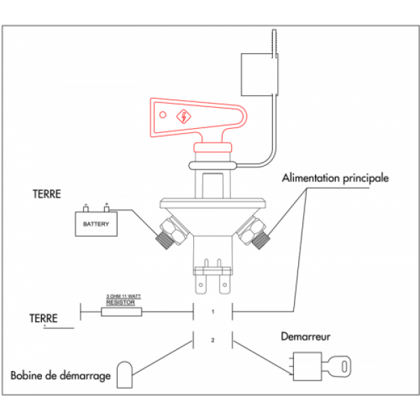– intrerupator cu 6 poli FIA pentru decuplarea bateriei la masinile de competitie